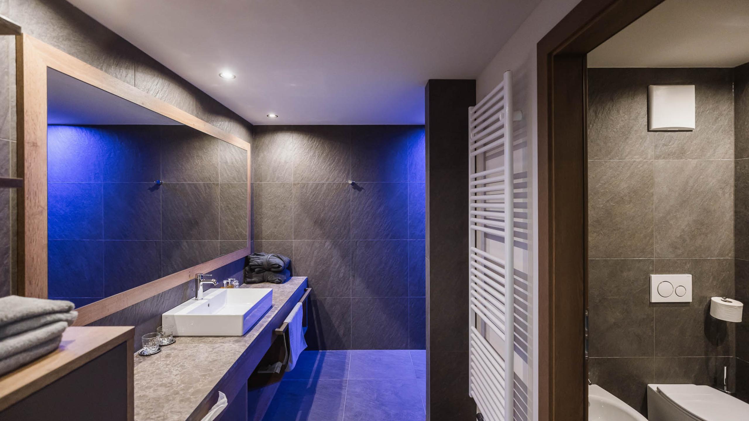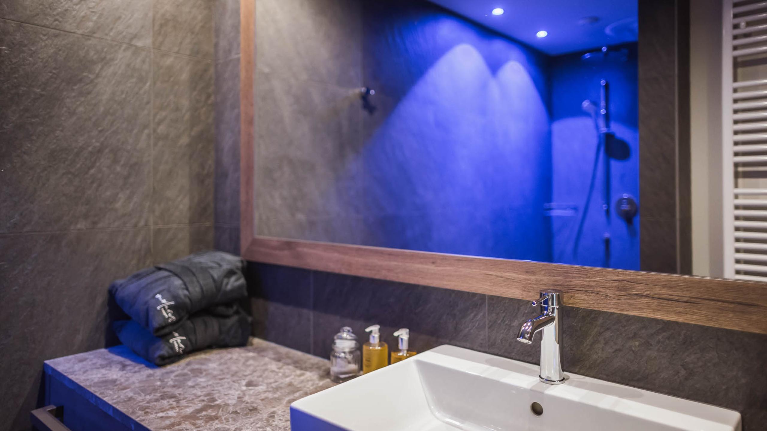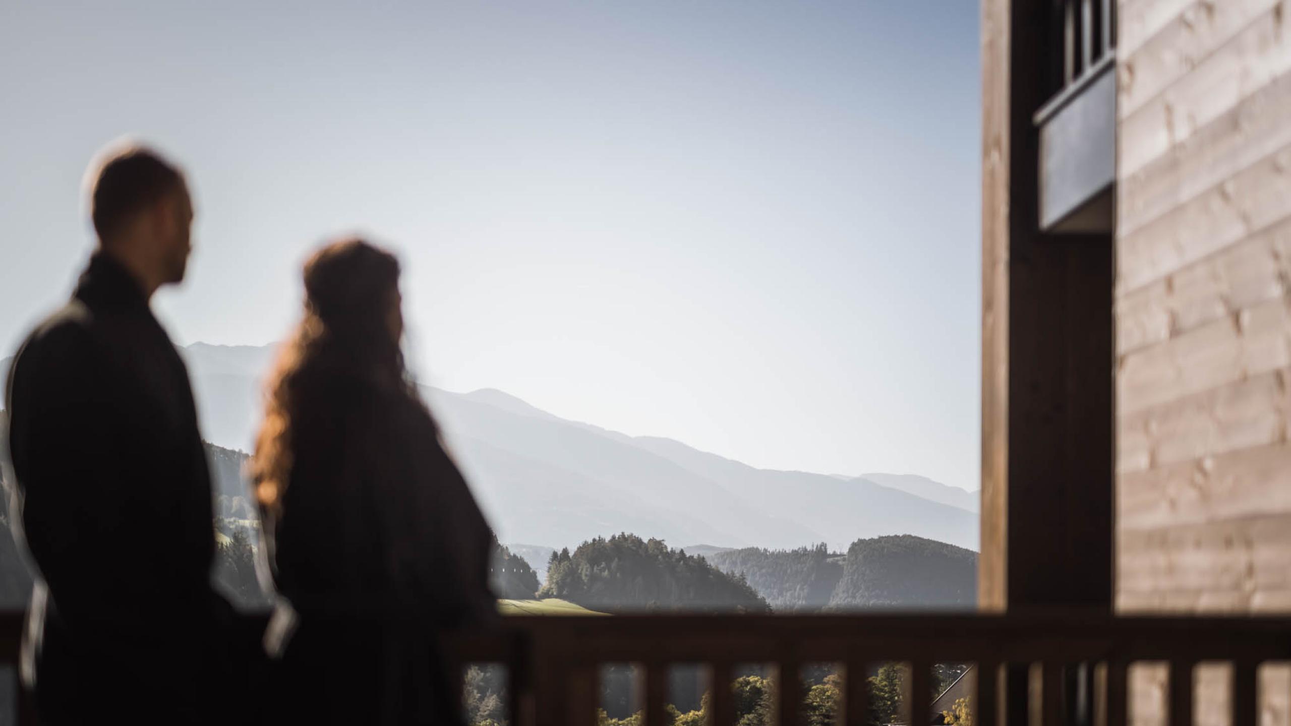 Our luxurious Alpin Lodge with its Alpine ambience is fitted with modern velvets and furniture made from local oak. It features a combined living and bedroom with a seating area, a large bathroom, and a south-facing panoramic loggia for an XXL view.