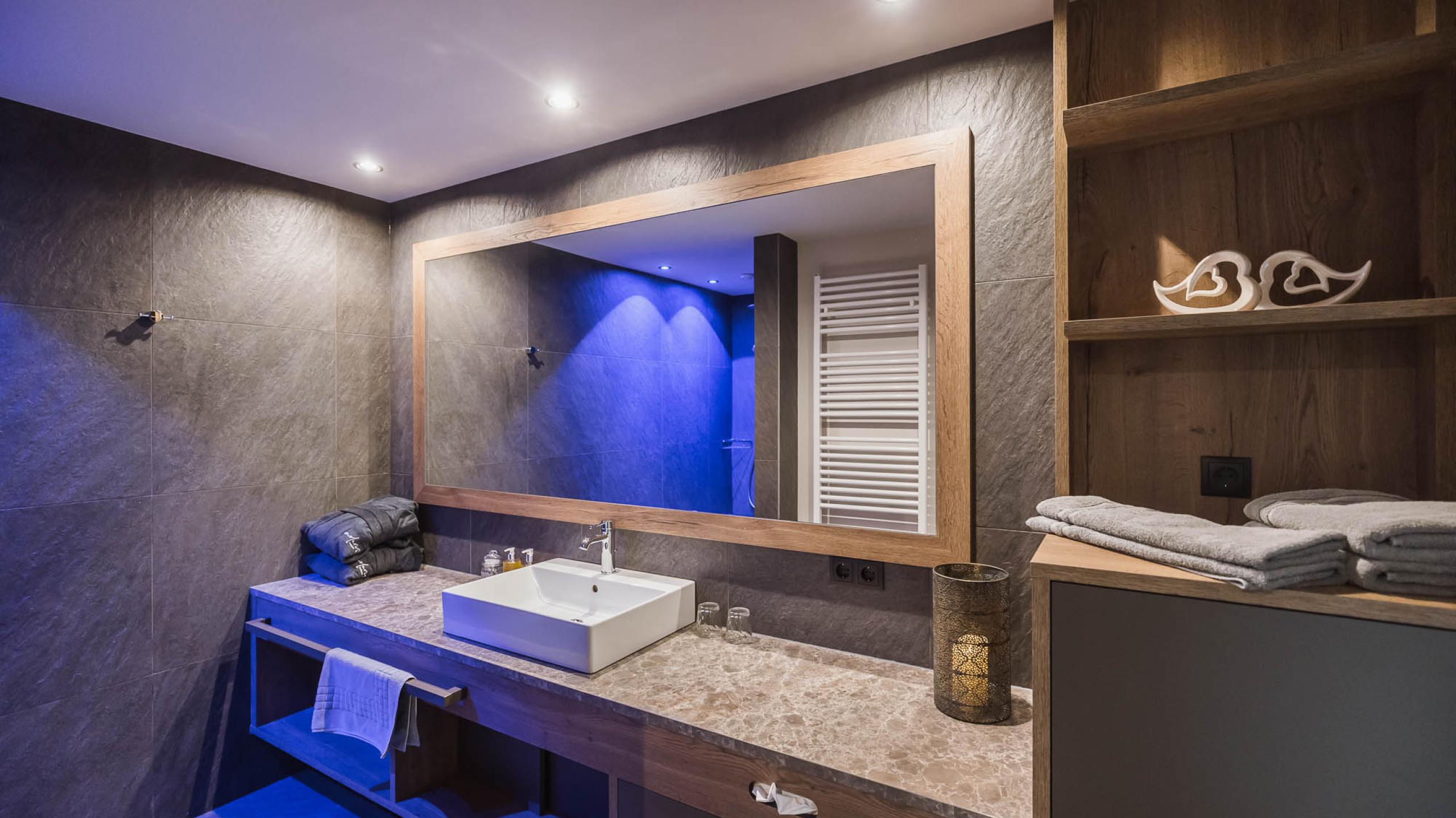 - Walk-in shower, toilet, wash basin, hairdryer, makeup mirror, bathroom necessities