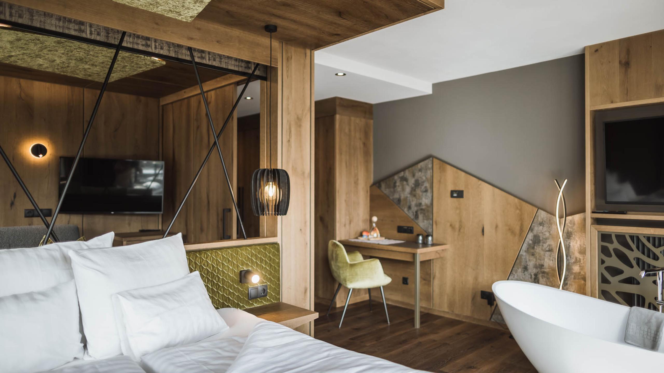 Erleben Sie modernen alpinen Lifestyle vom Feinsten in unser SPA-Suite. Liebevoll eingerichtet in Eichenholz, edlen Samtstoffen und romantischer Beleuchtung.